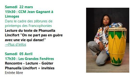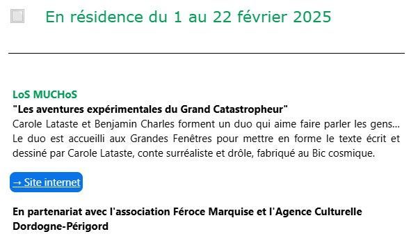 - Séances d'écoute avec Laurine Wagner : Venez partager son vécu en lien avec l’effondrement de la falaise du 02 février 2024 à Excideuil (durée 45 minutes). Sur rdv du 23 au 26 juin via le lien
